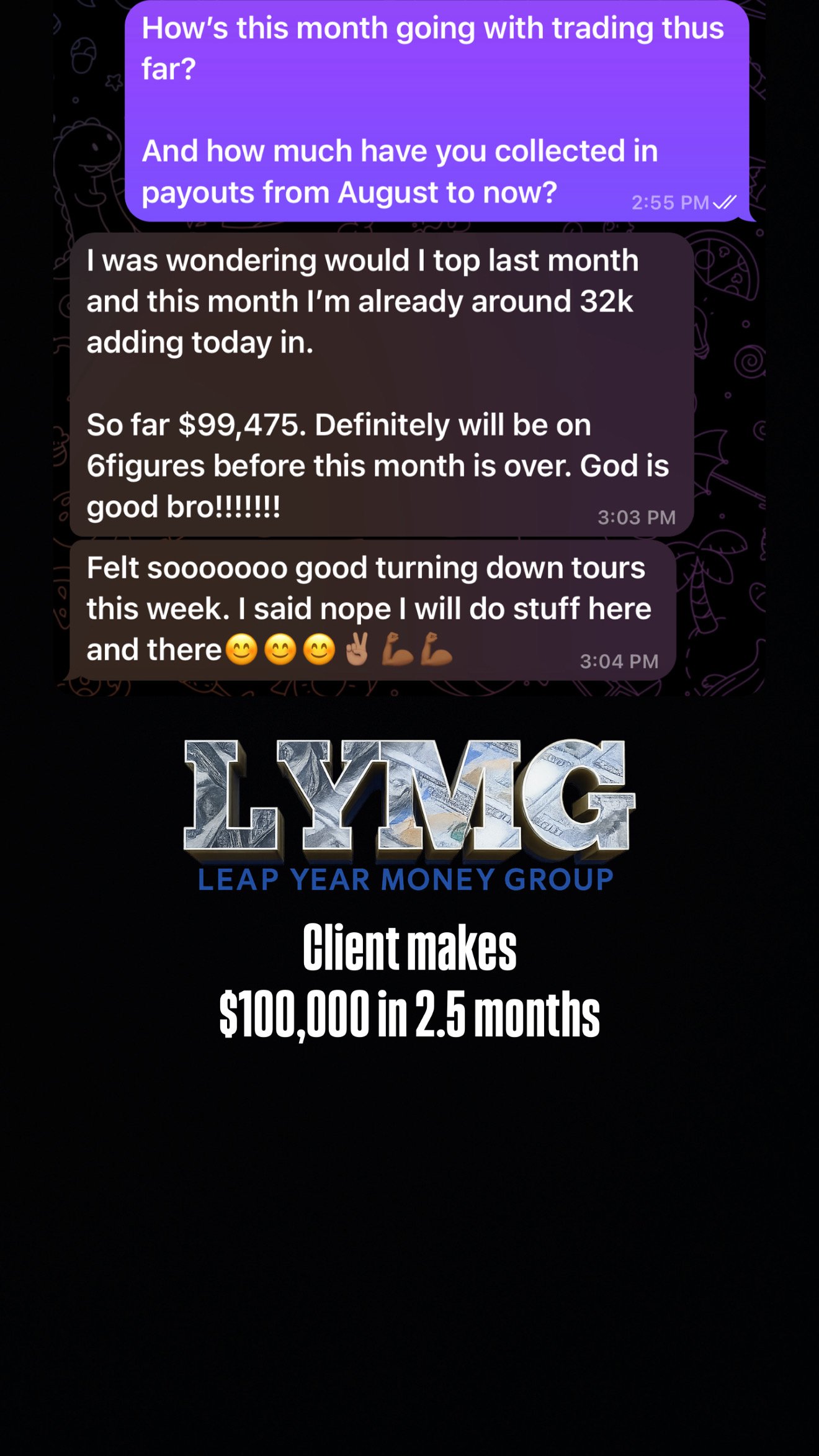 LYMG Client Demetrice E. details how making $100k in 2.5 months worth of trading has helped him reclaim his time from working. Empowering him to spend more time with his family!